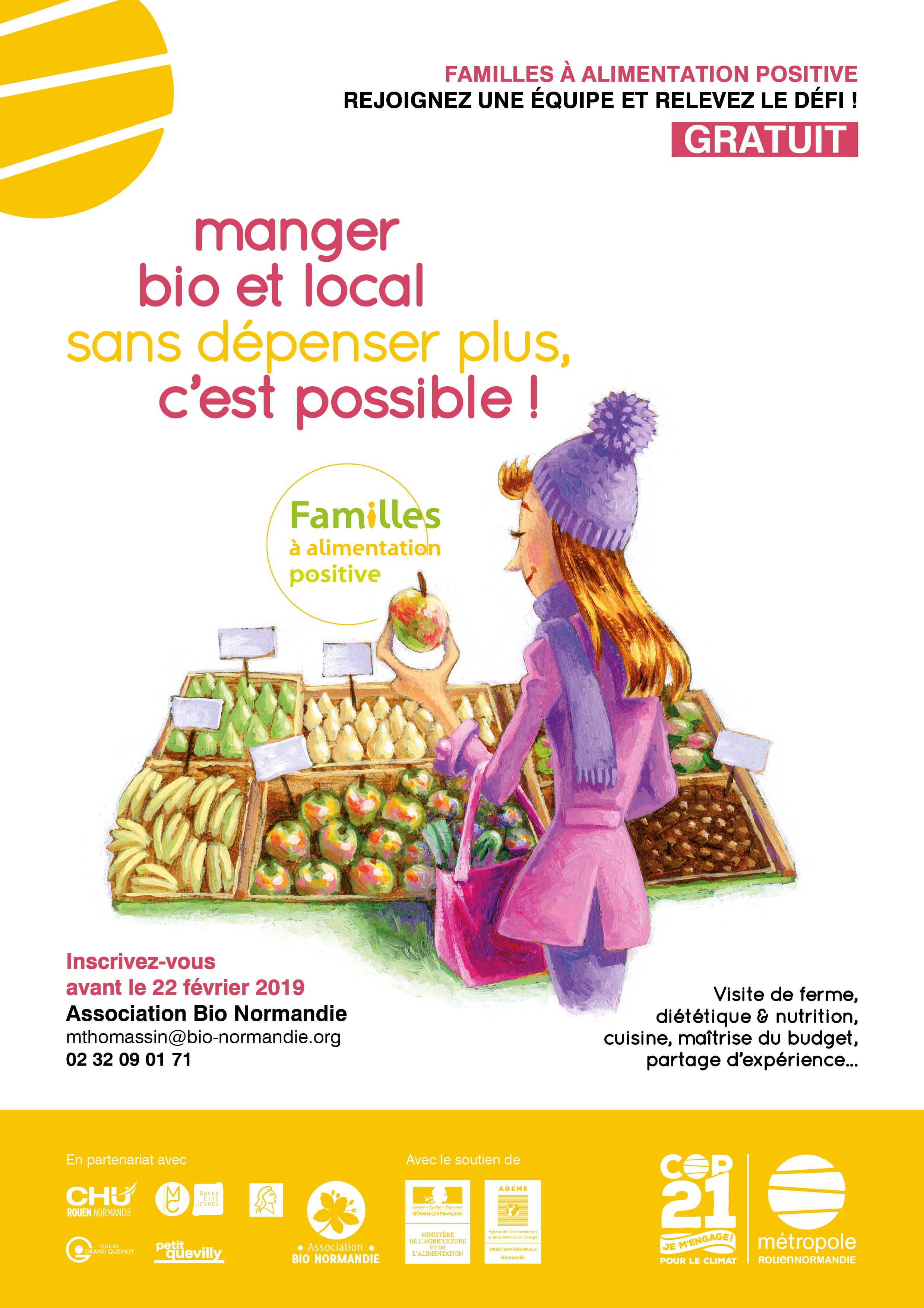 Si ce défi citoyen vous intéresse, inscrivez-vous avant le 22 février 2019 auprès de l’Association Bio Normandie (mthomassin@bio-normandie.org - 02 32 09 01 71) qui anime ce défi pour le compte de la Métropole.